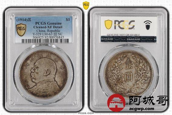 Lot:28 原味老包浆 三年大头壹圆 PCGS XF