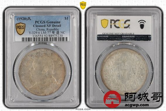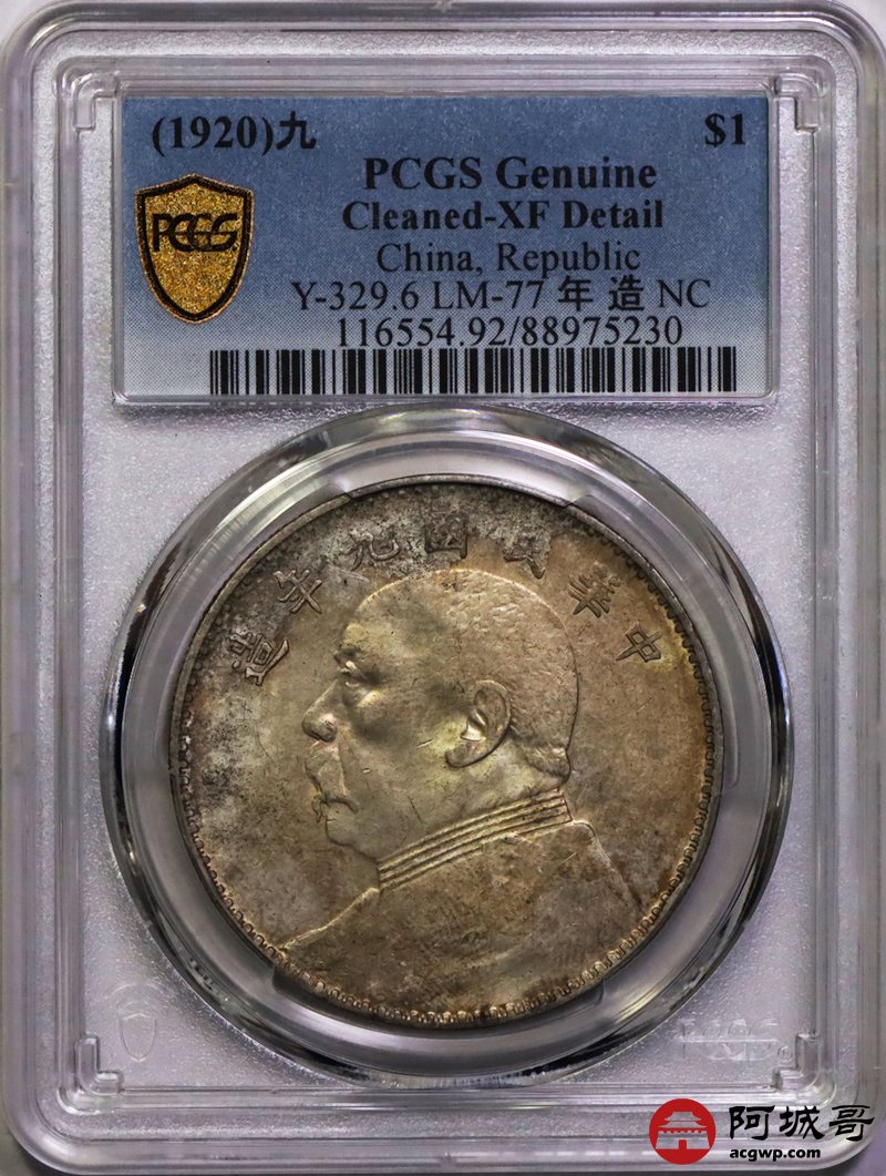 Lot:1 淡彩底光九年中发壹圆 PCGS XF