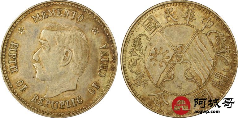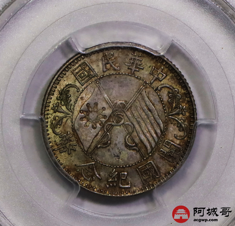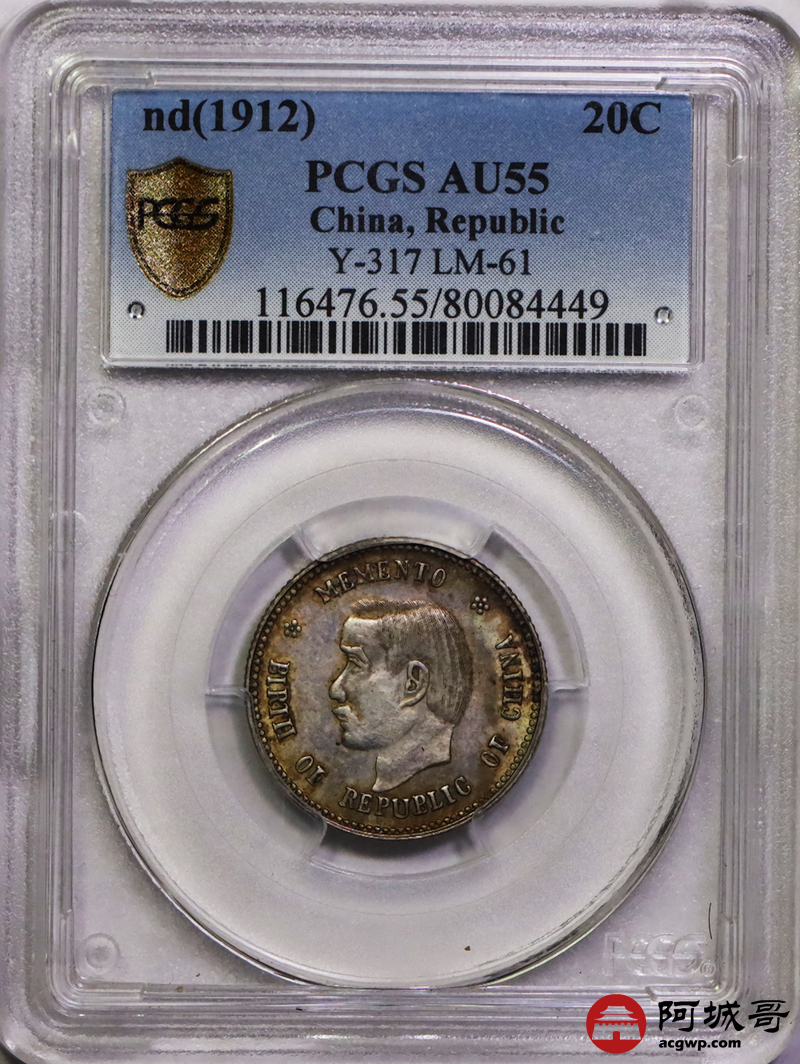 Lot:7 深打底光黄油彩 孙像开国贰角 PCGS AU55