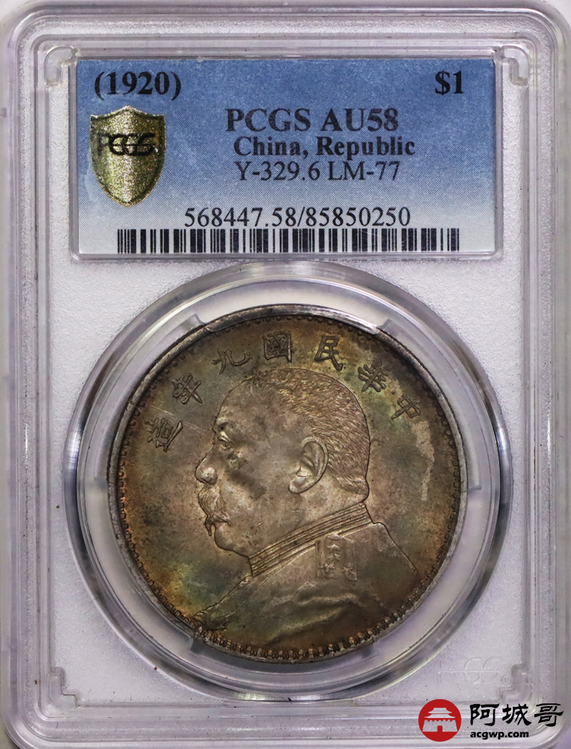 Lot:6 转光 双面老五彩 九年精发壹圆 PCGS AU58