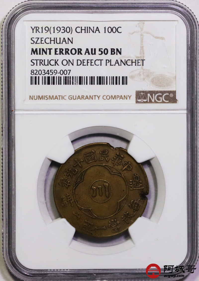 Lot:14 边铸 生活过高铜币 NGCAU50BN Mint Error错版