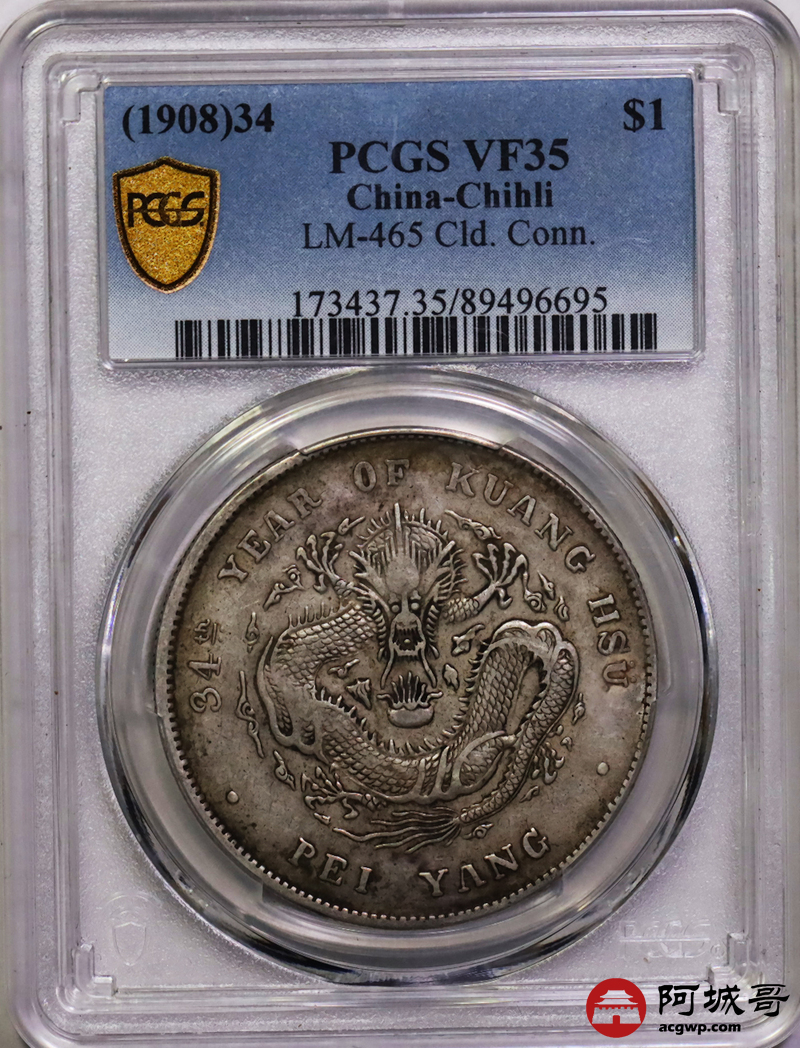 Lot:9 原味老包浆 北洋34七钱二分 PCGS VF35