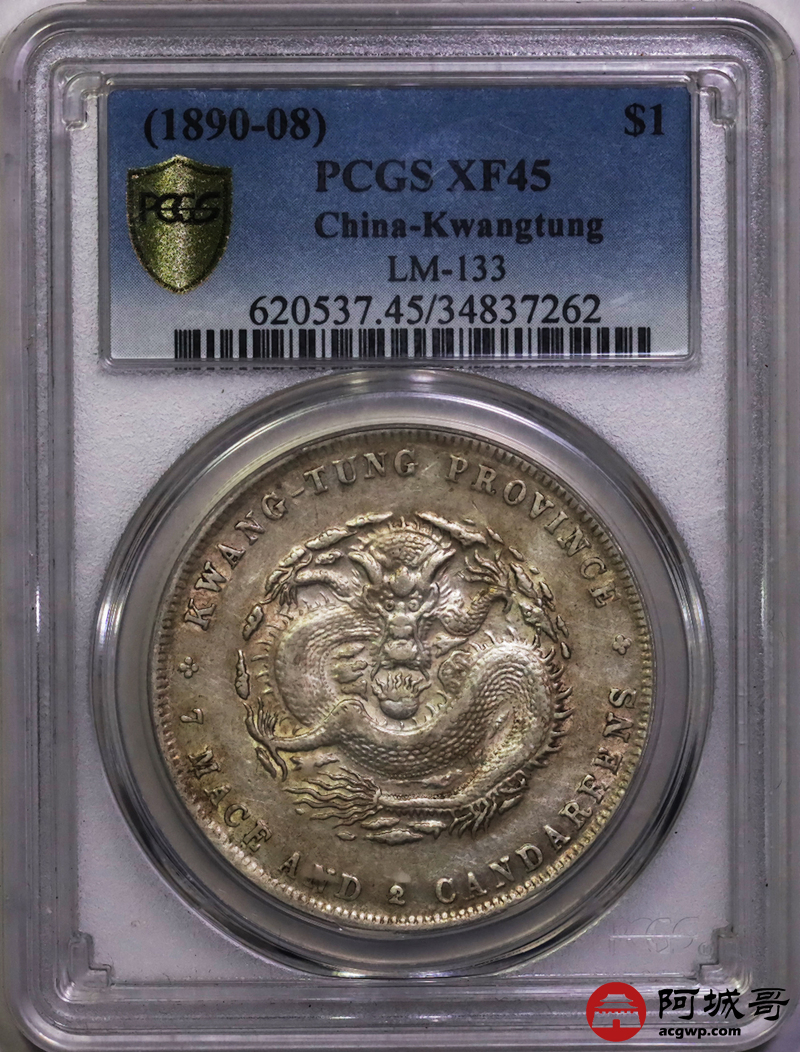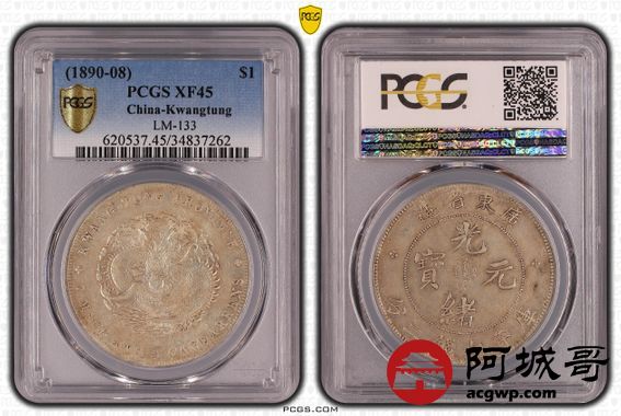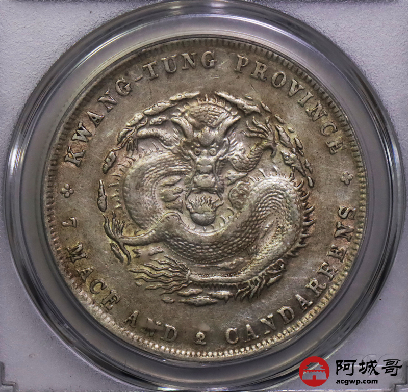 Lot:8 原味 黄油底光 广东光绪七钱二分 PCGS XF45