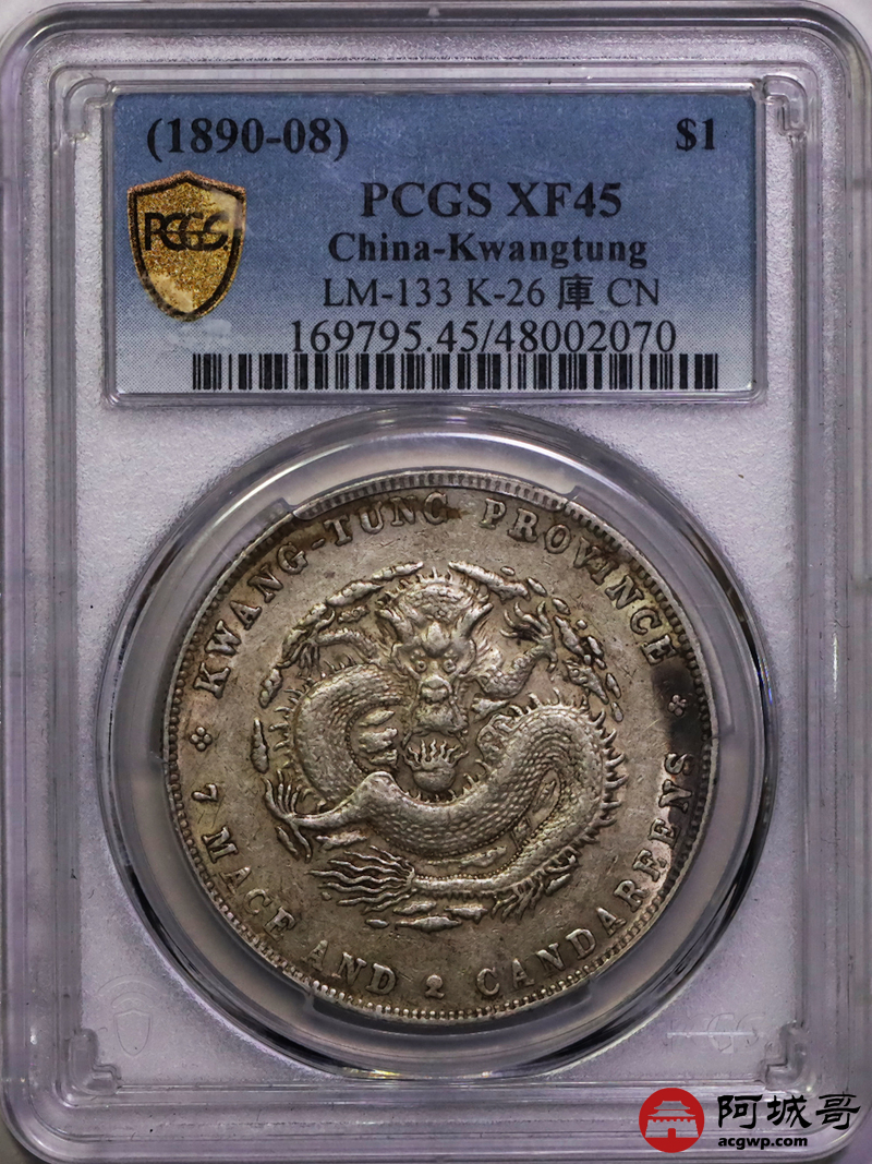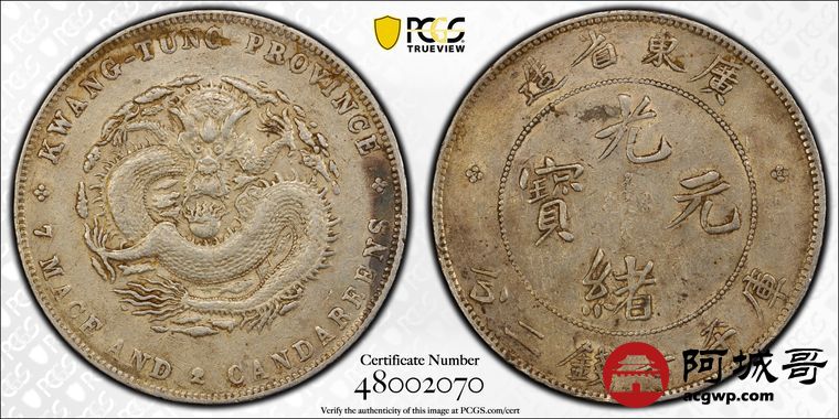 Lot:7 原味老包浆广东光绪七钱二分 PCGS XF45