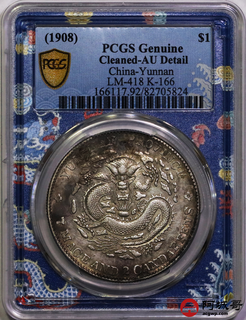 Lot:23 老包浆 底光 老云南光绪七钱二分 PCGS AU