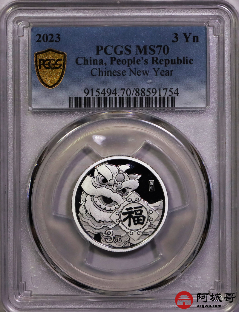 Lot:34 2023年福字3元银币 PCGS MS70