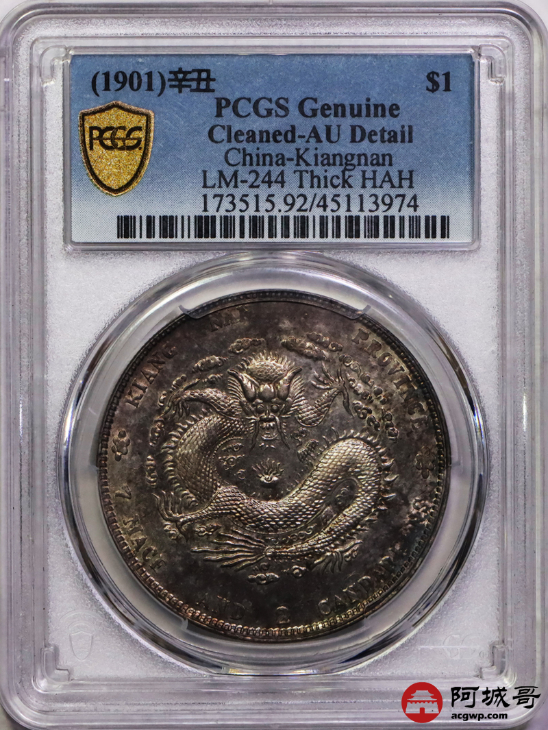 Lot:18 五彩底光 爆龙鳞 江南辛丑七钱二分 PCGS AU