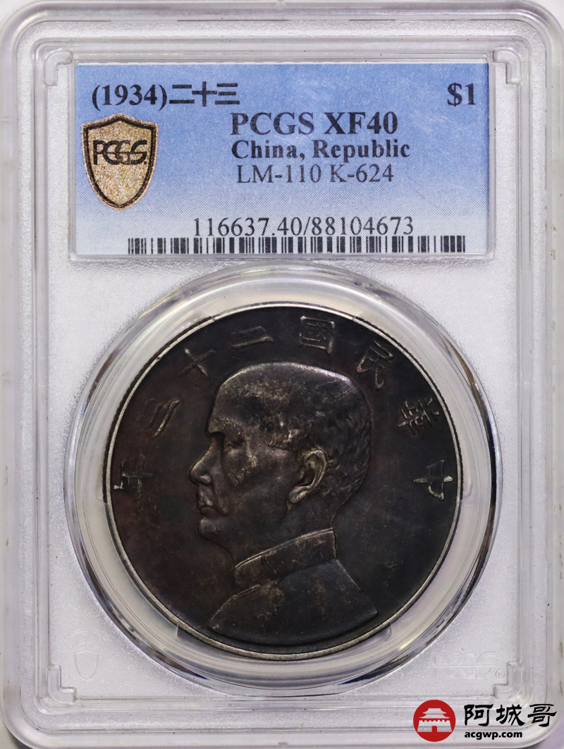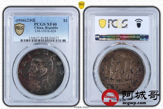 Lot:25 原味酱黑老包浆 二十三年船洋 PCGS XF40