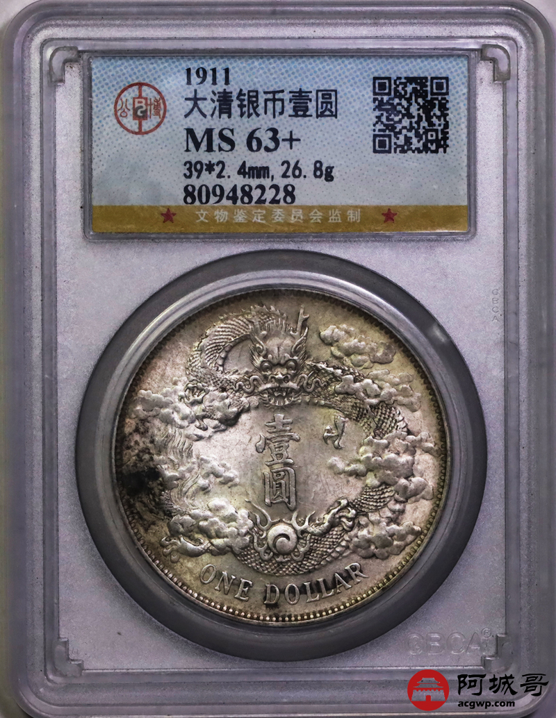 Lot:20 黄油原光 大清宣三壹圆 公博 MS63+