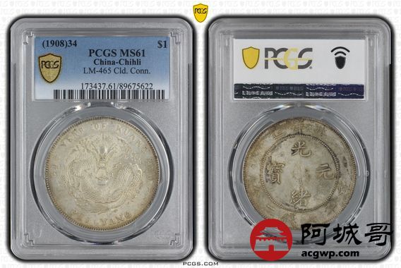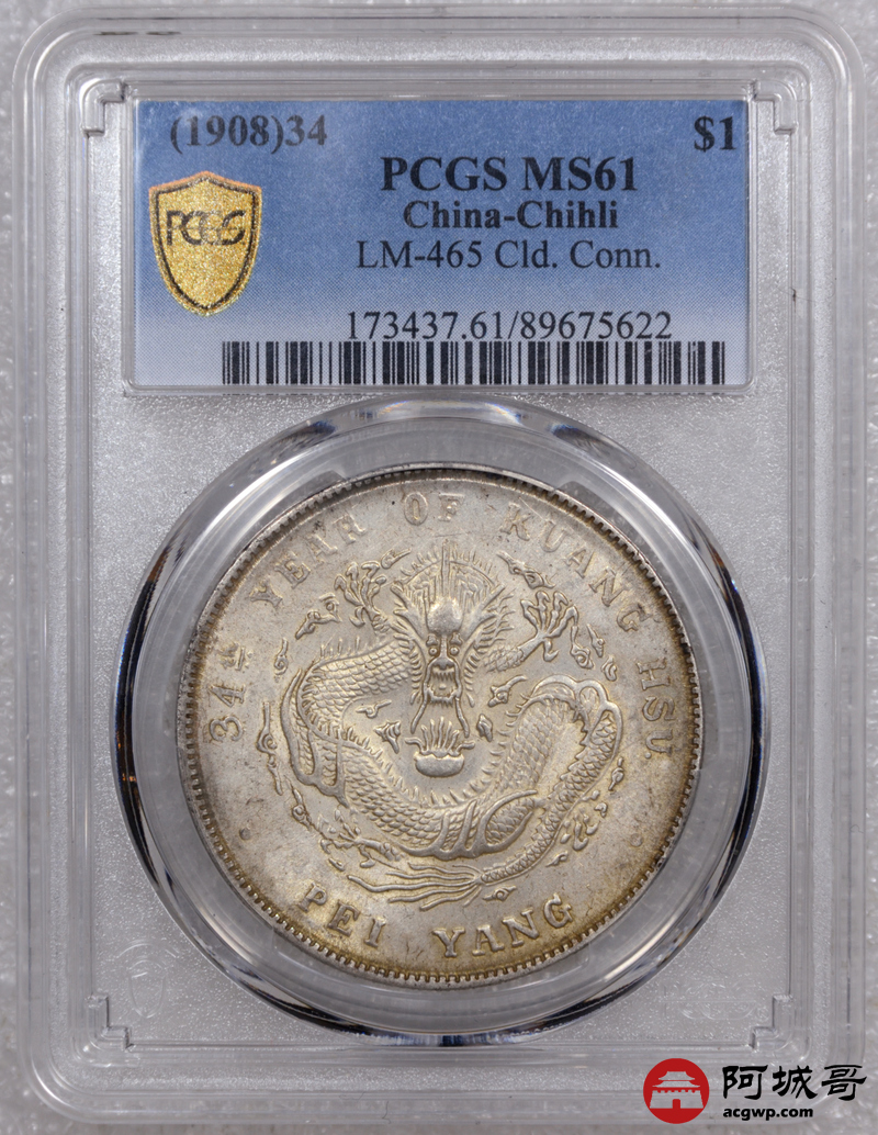 Lot:12 黄油原光 北洋34七钱二分 PCGS MS61
