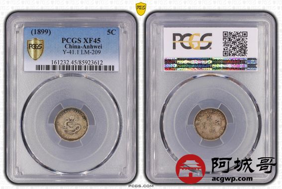 Lot:26 原味 酱味老包浆 二十五年安徽光绪三分六厘 PCGS XF45