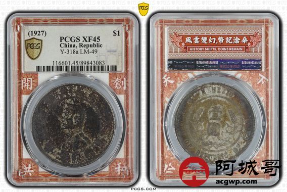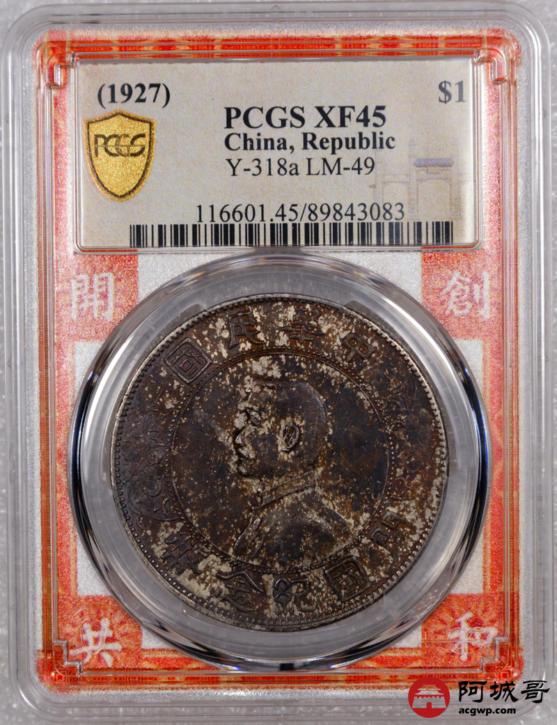 Lot:29 原味 酱红老五彩 孙像小头壹圆 PCGS XF45