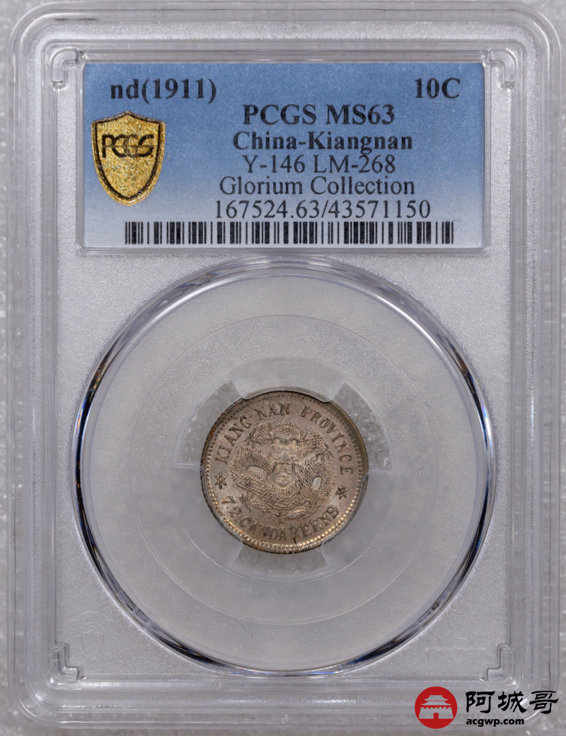 Lot:25 粉彩原光 江南宣统七分二厘 PCGS MS63