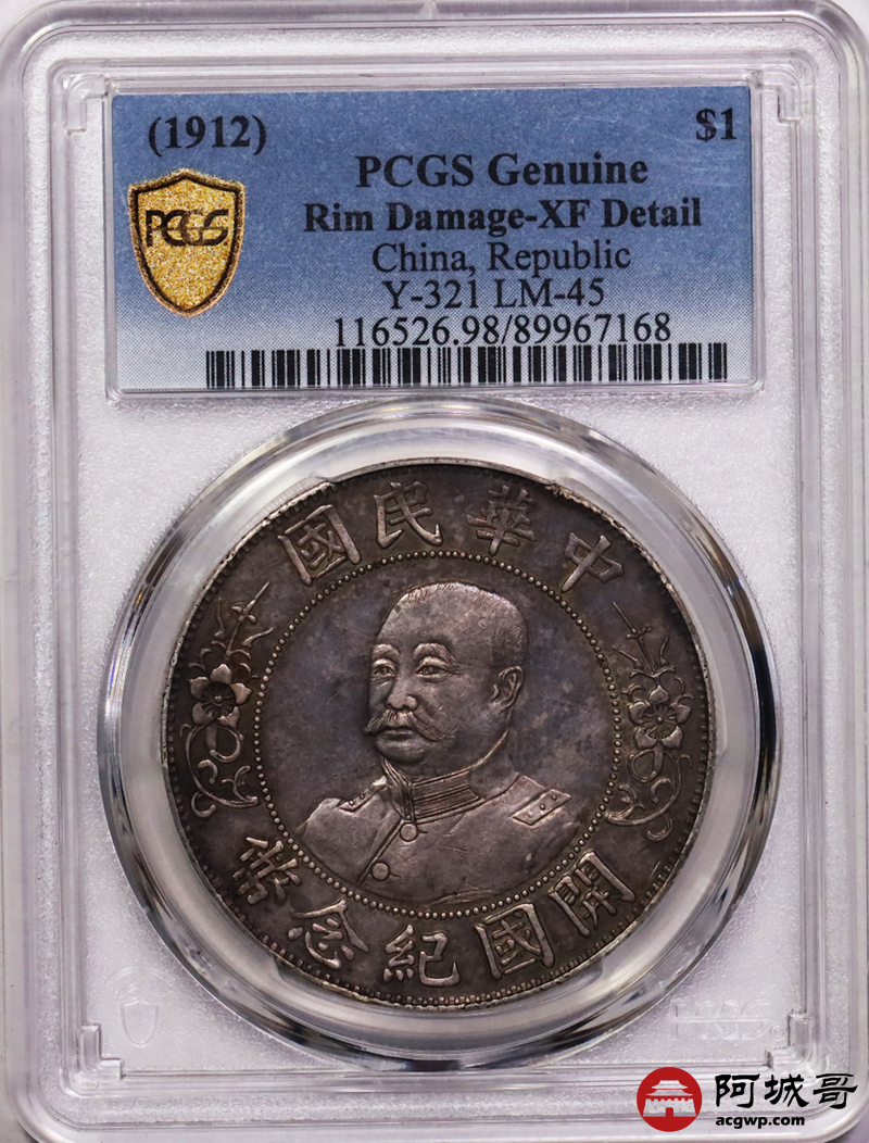 Lot:13 原汁原味开国纪念币黎元洪 PCGS XF