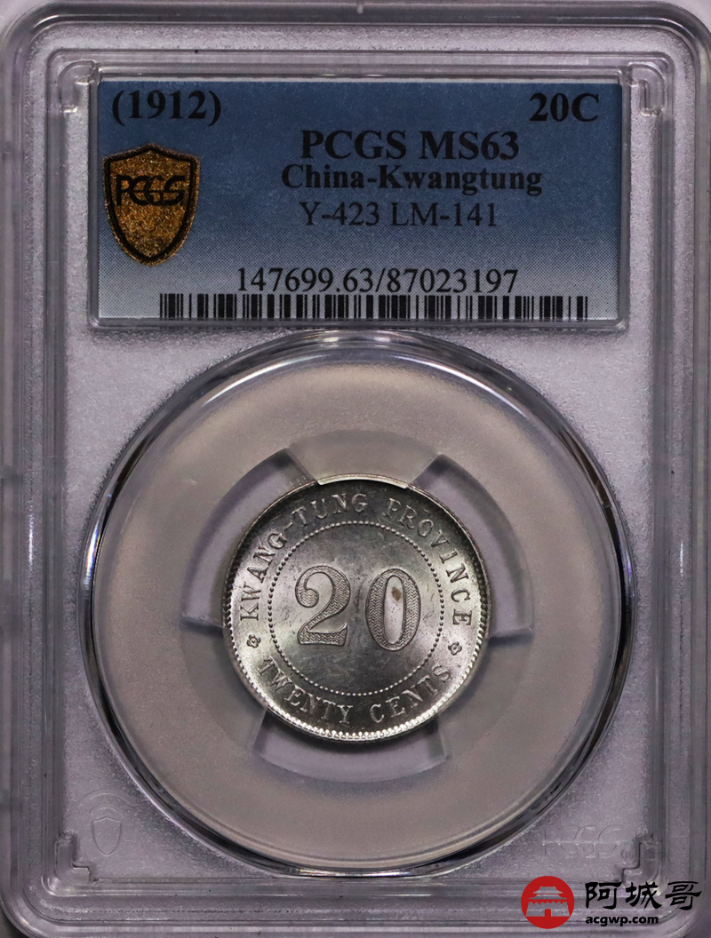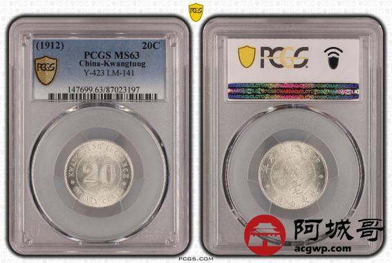 Lot:37 原光 广东元年贰豪 PCGS MS63