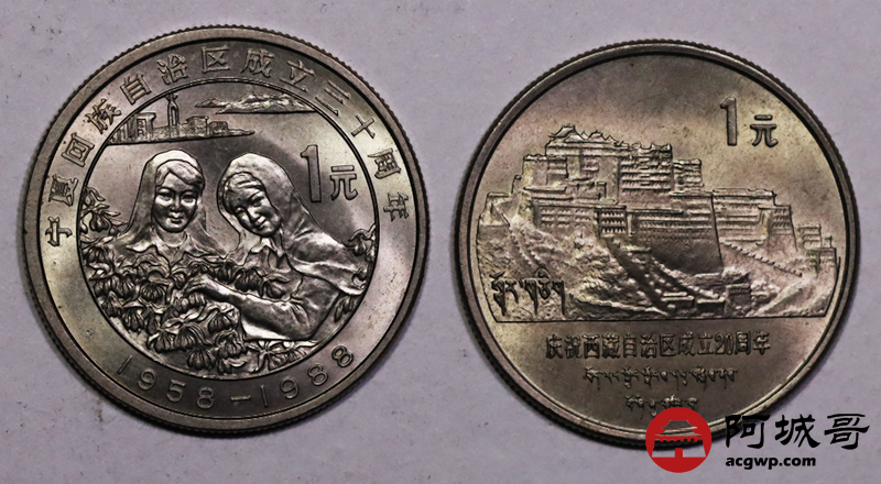 Lot:40 1985/1988宁夏回族成立三十周年,西藏成立二十周年纪念币两枚