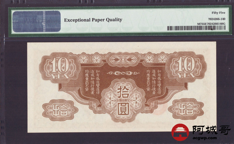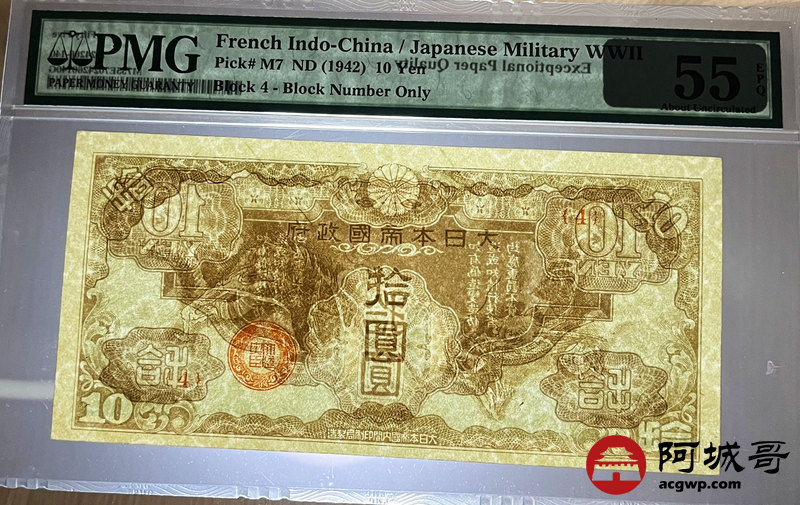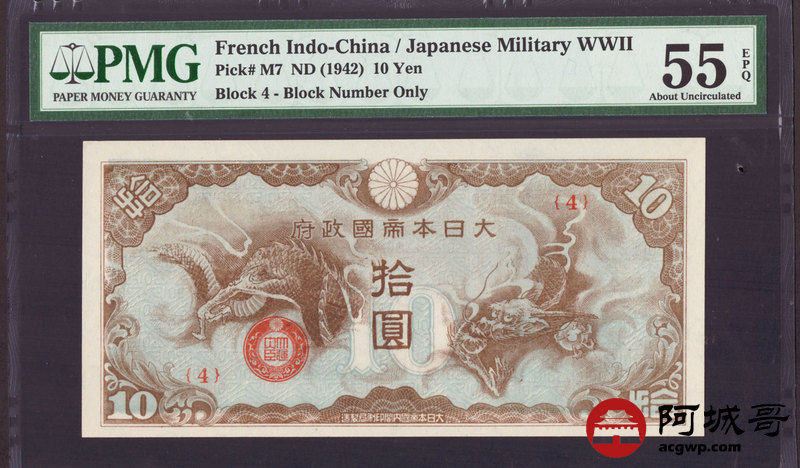 Lot:22 二战时期 日本拾圆 PMG 55EPQ