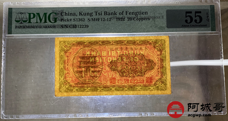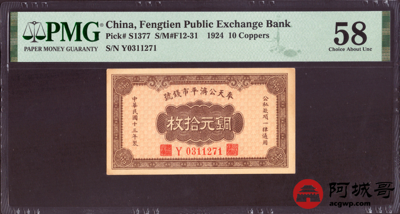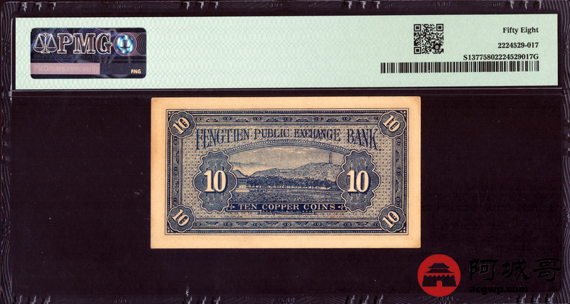 Lot:57 民国十三年 奉天公济平市钱号 铜元拾枚 PMG 58