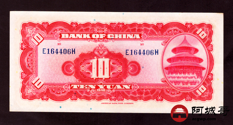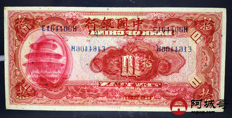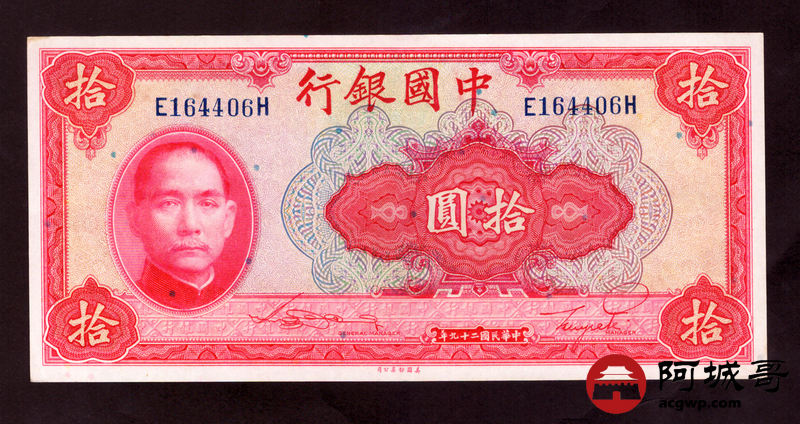 Lot:38 民国二十九年 中国银行 拾圆 93成新