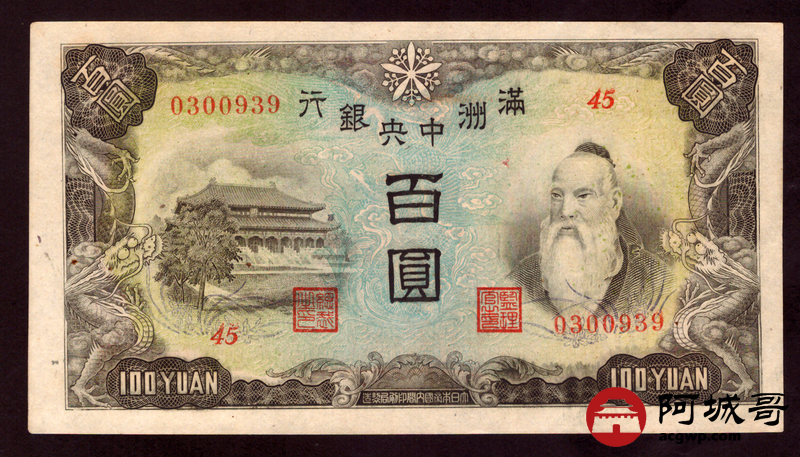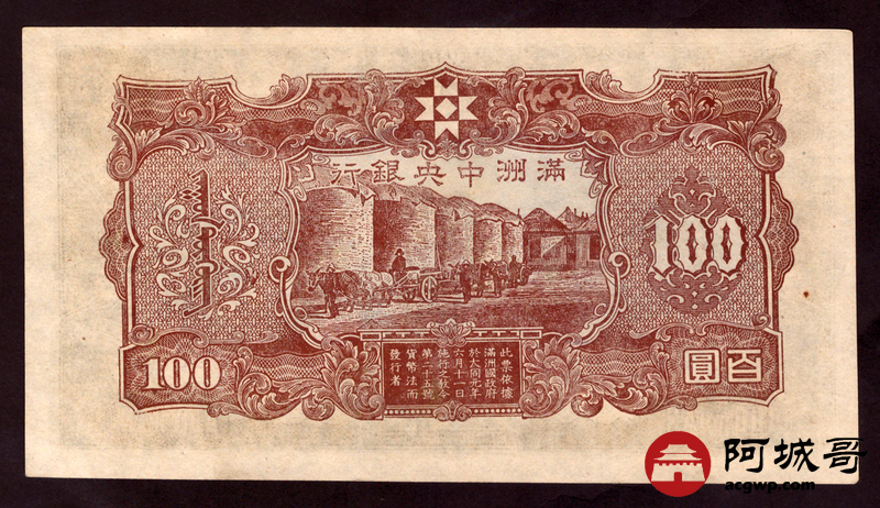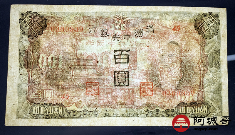 Lot:17 满洲中央银行 佰圆 原票92成新