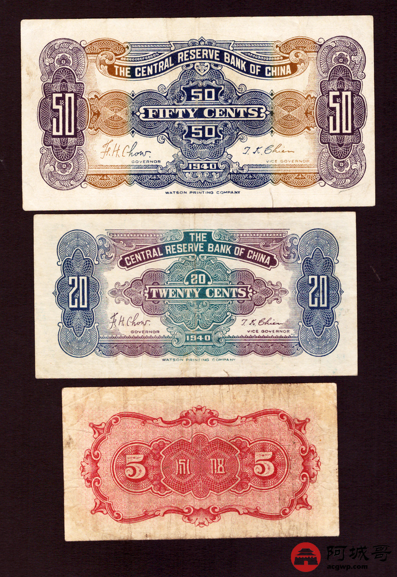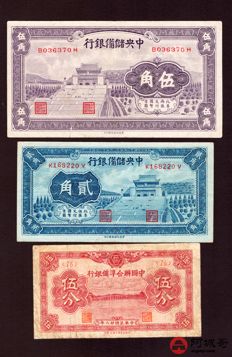 Lot:60 民国时期日伪银行纸币3张 72至8成新