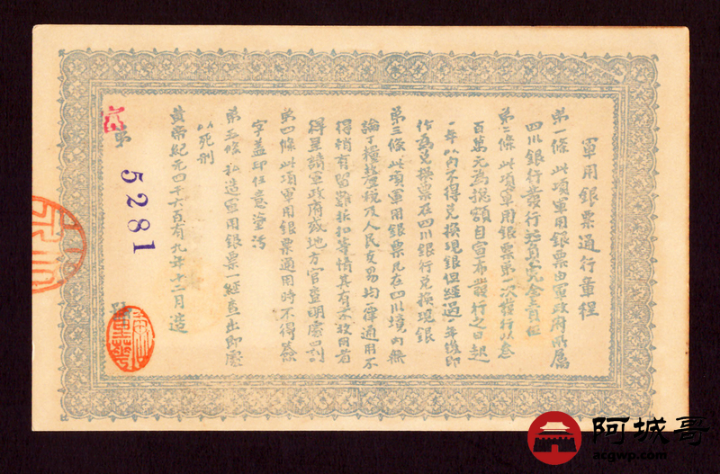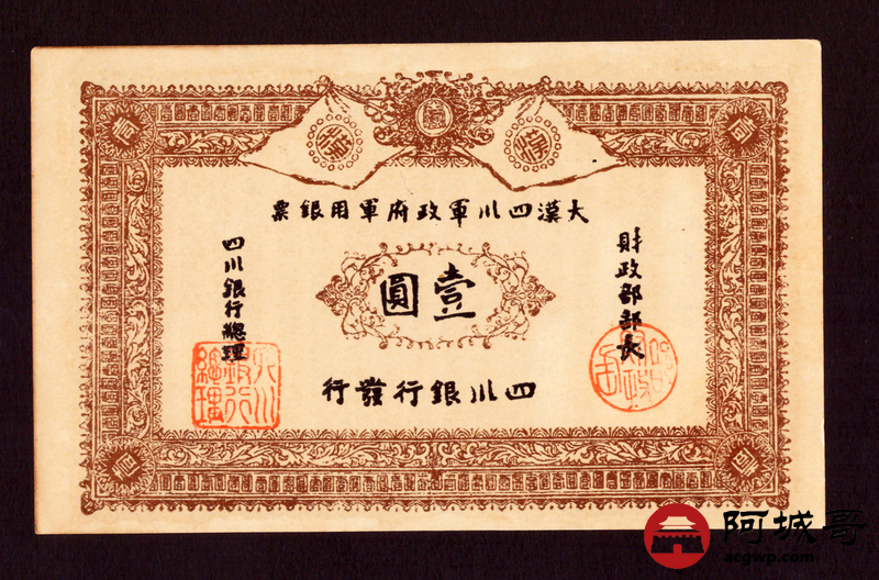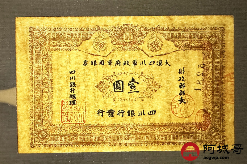 Lot:66 大漠四川军政府军用银票 壹圆 老假票 94成新