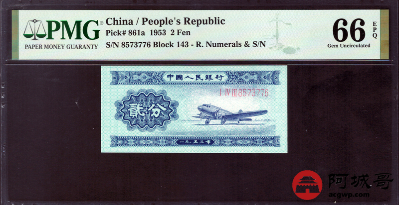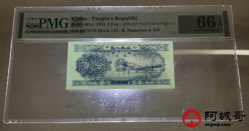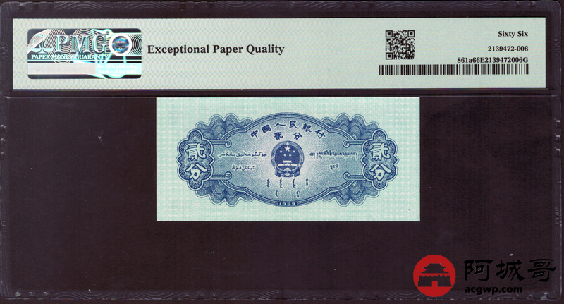 Lot:14 二版 1953年 长号贰分 PMG 66EPQ