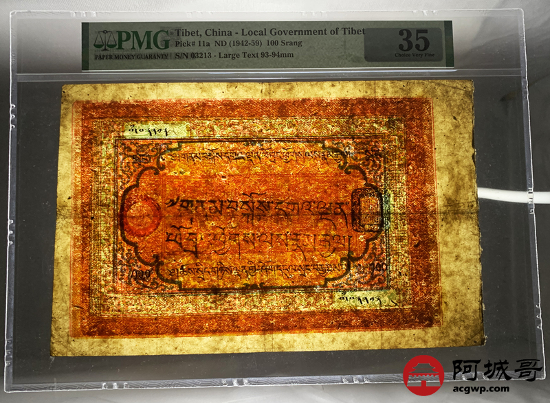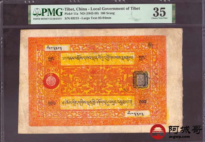 Lot:26 西藏老纸币 100两 PMG 35 原汁原味、品相自然
