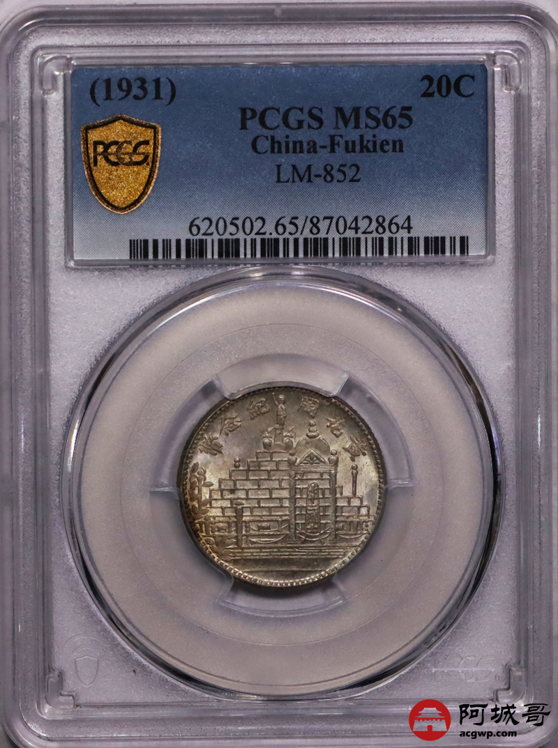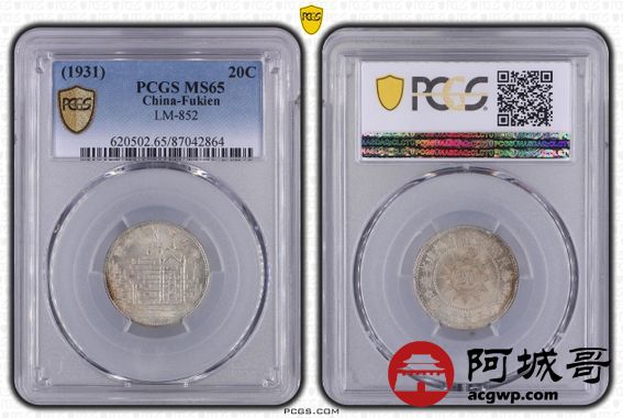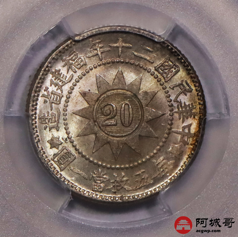 Lot:12 黄油原光 民国二十年福建黄花岗贰角 PCGS MS65