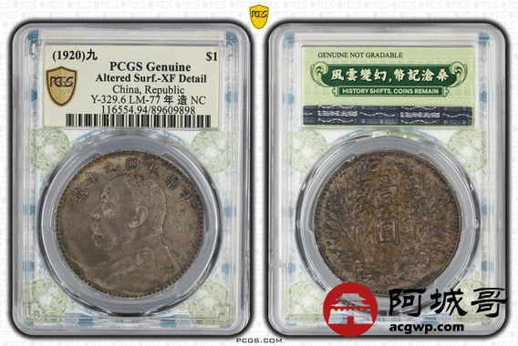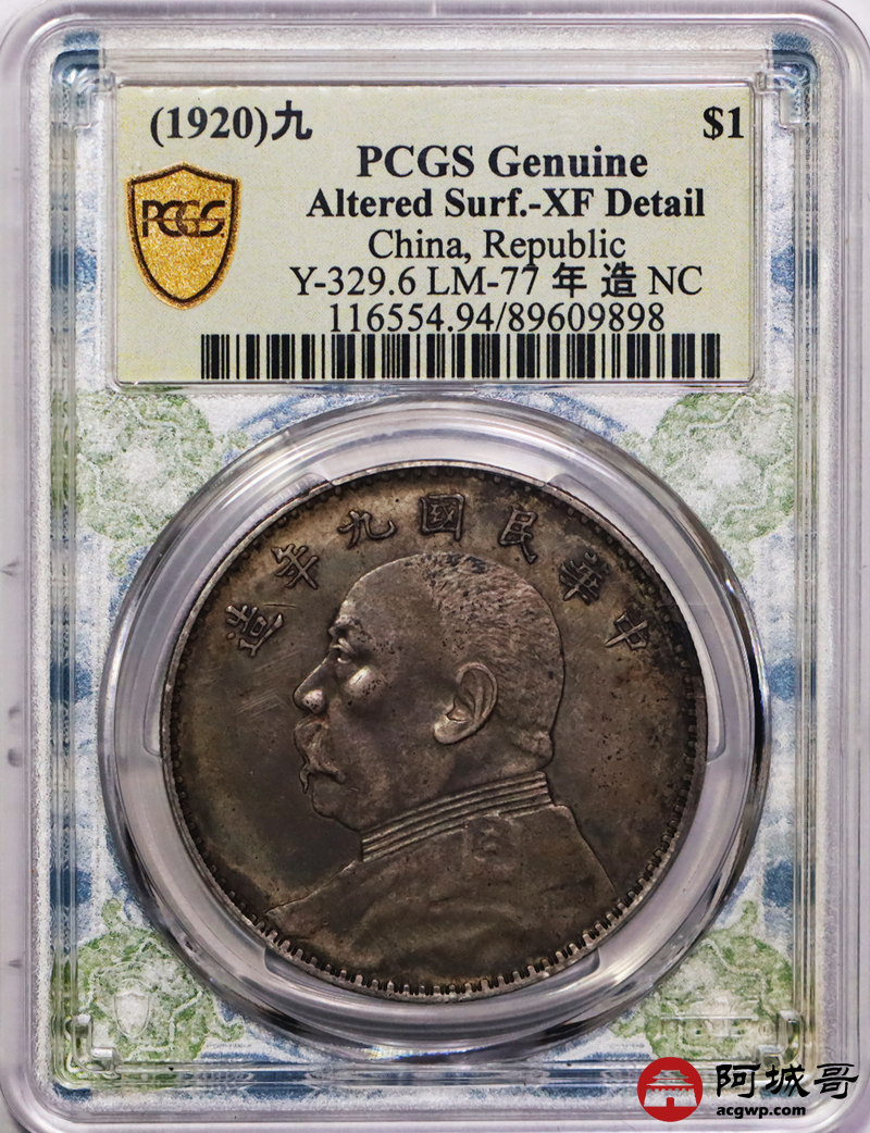 Lot:4 原味 酱彩 九年中发壹圆 PCGS XF