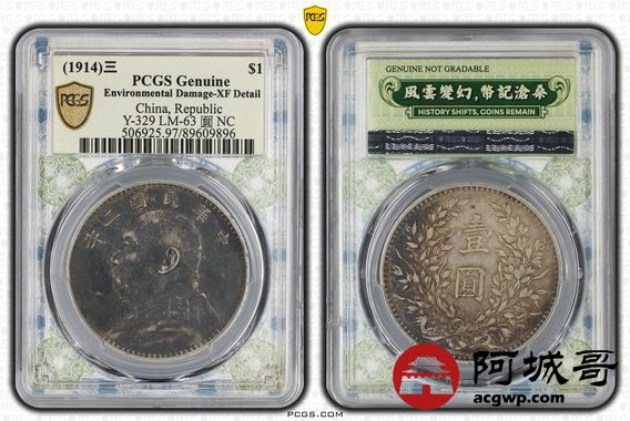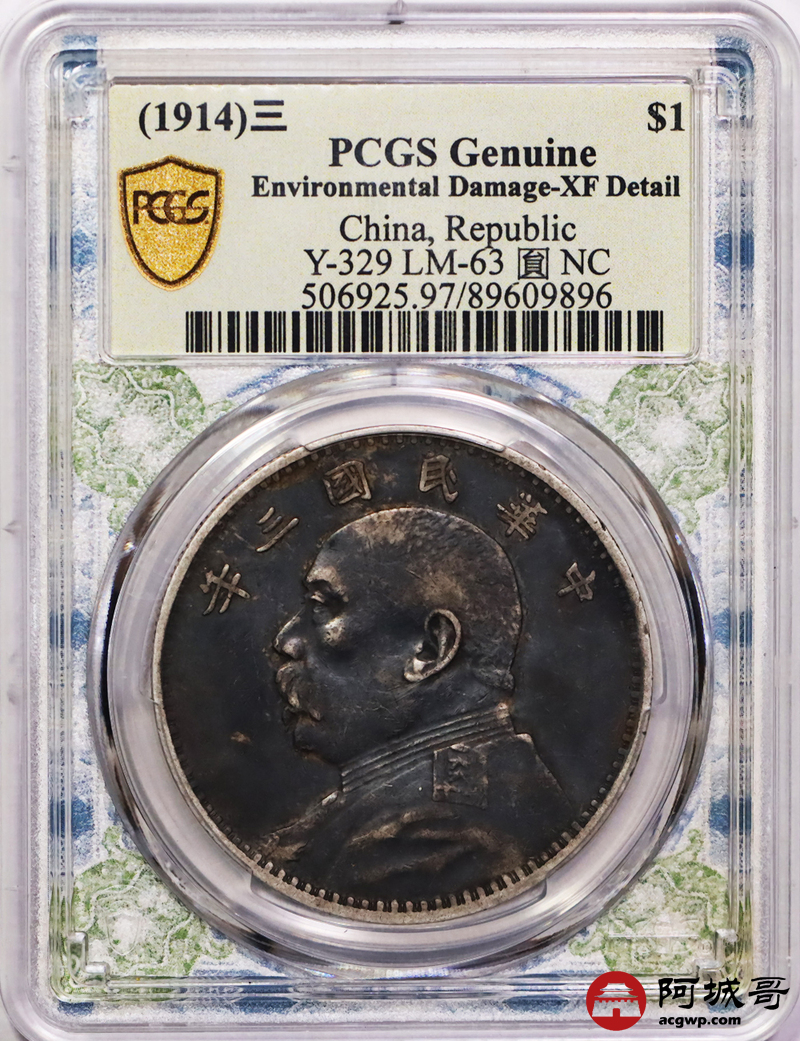 Lot:2 原味 酱黑老包浆 三年大头壹圆 PCGS XF