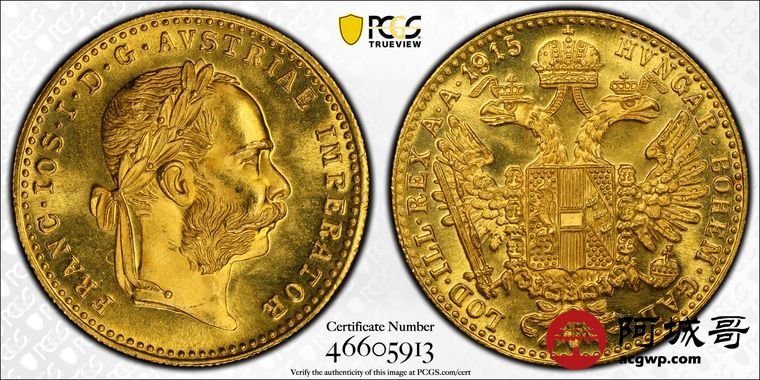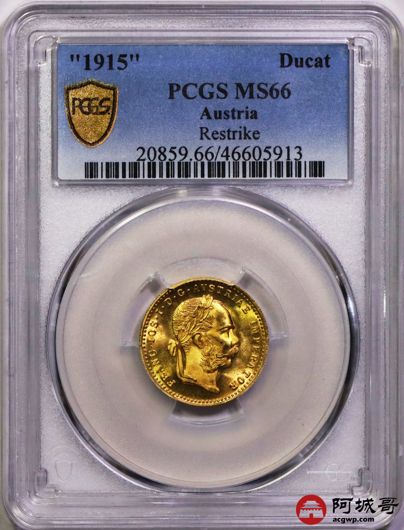 Lot:21 1915年奥匈帝国杜卡特金币 PCGS MS66