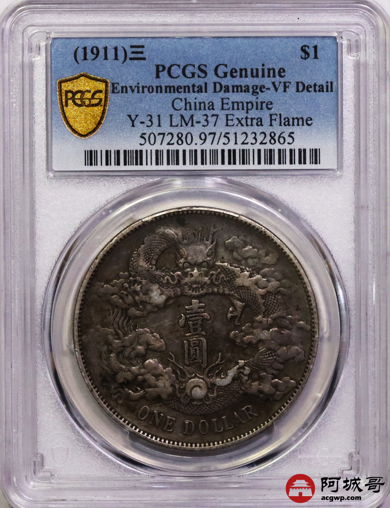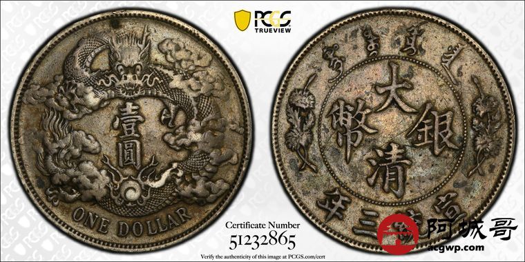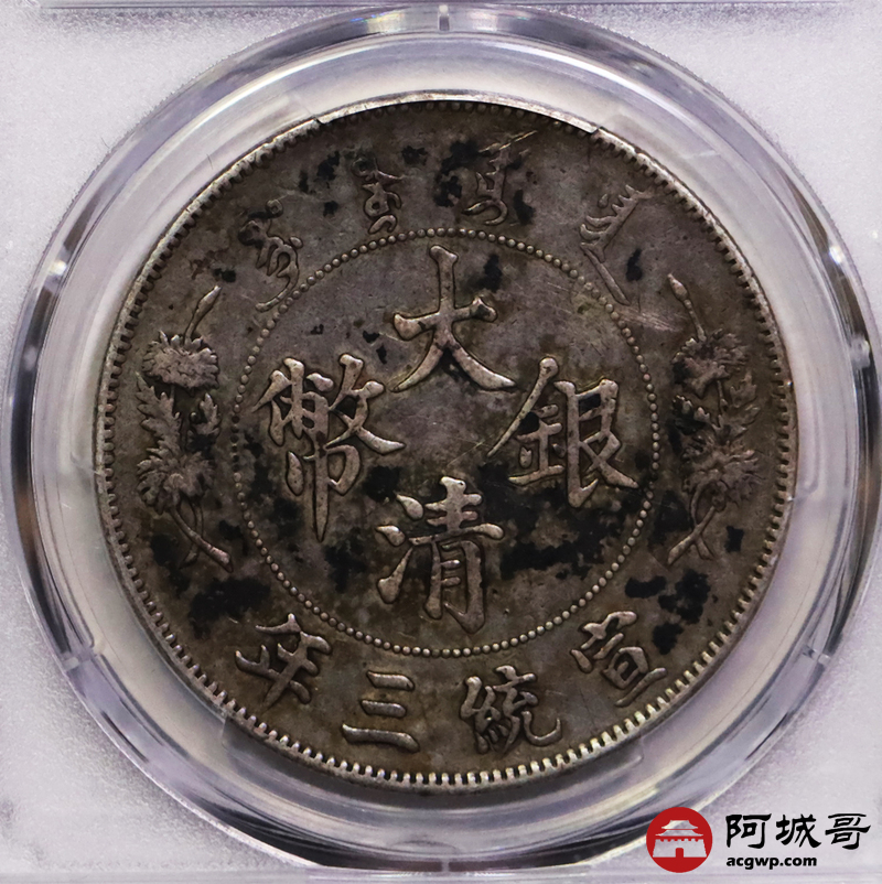 Lot:17 原味 酱彩包浆 大清宣三壹圆 PCGS VF