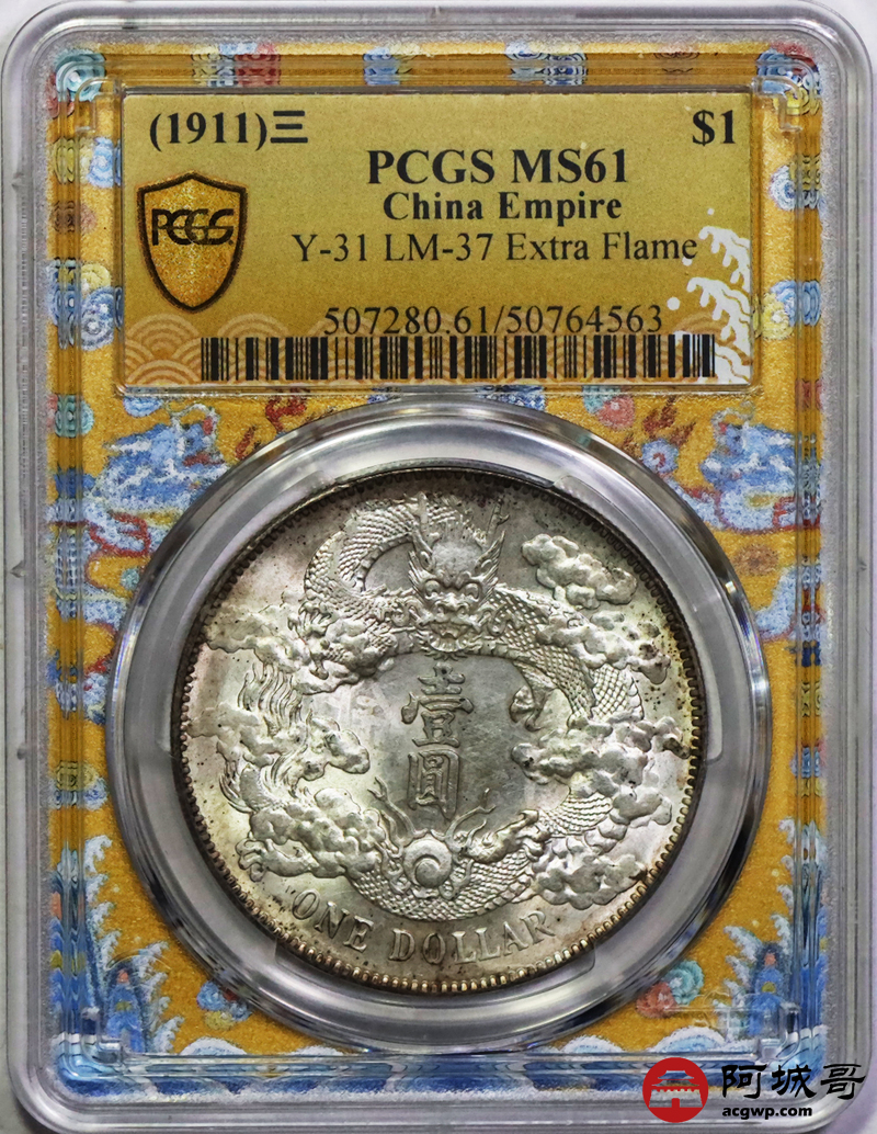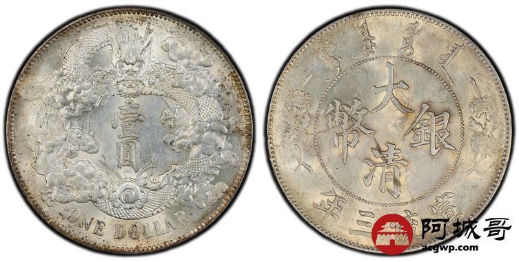 Lot:14 深打 黄油原光 大清宣三壹圆 PCGS MS61