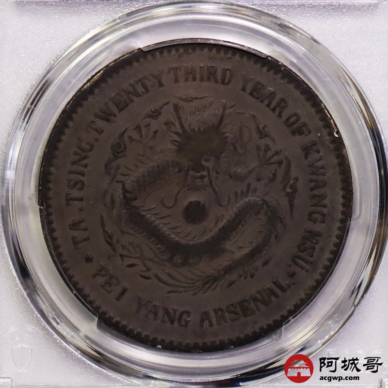 Lot:29 原味咖色老包浆 北洋二十三年机器局壹圆 PCGS VF