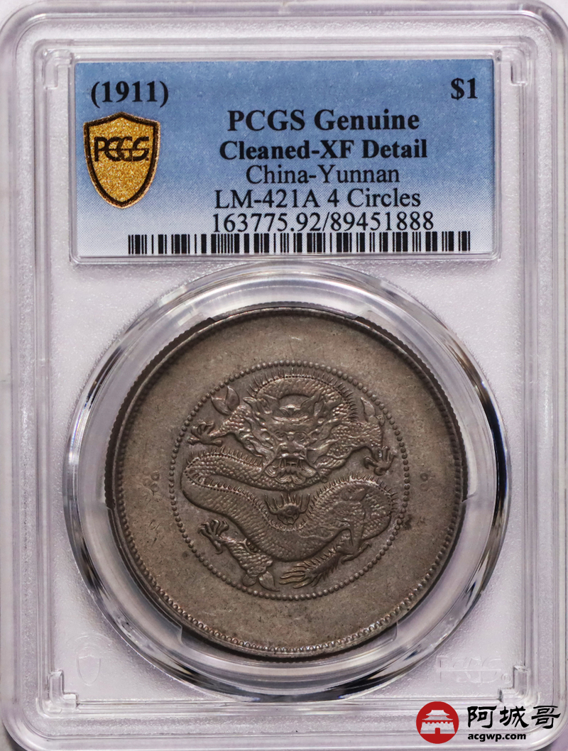 Lot:3 原味老包浆 云南大困龙七钱二分 PCGS XF