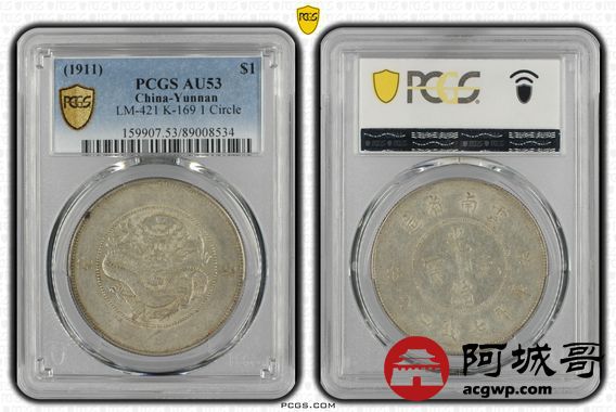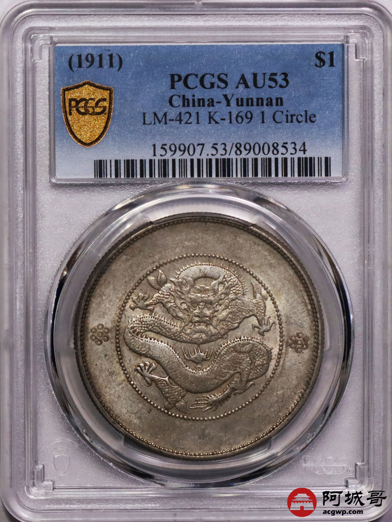 Lot:8 原味老包浆 云南大困龙钱二分 PCGS AU53