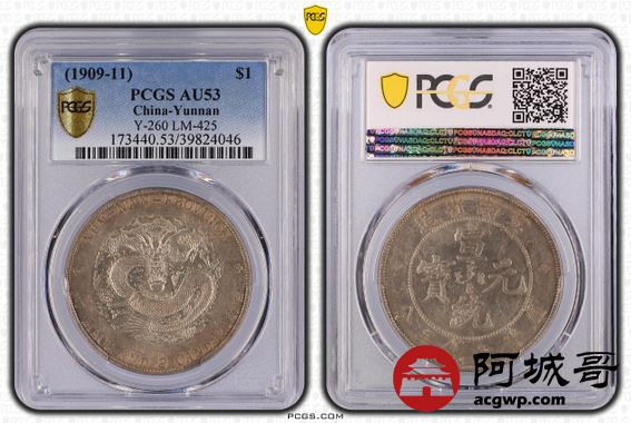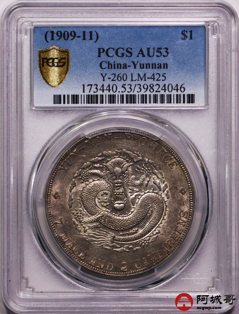 Lot:17 深打黄油转光 老云南宣统七钱二分 PCGS AU53