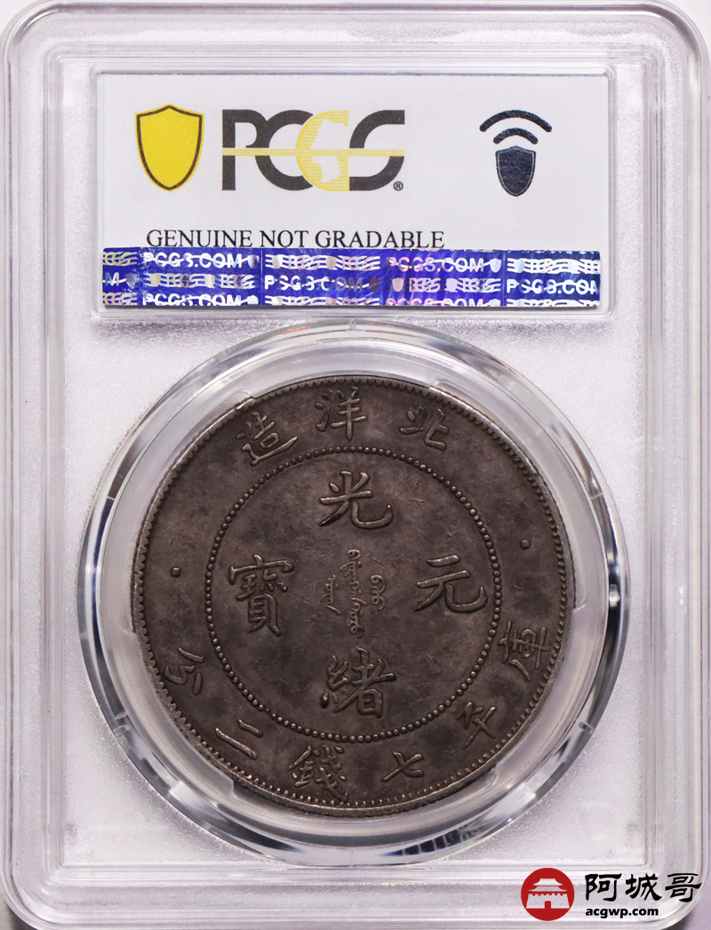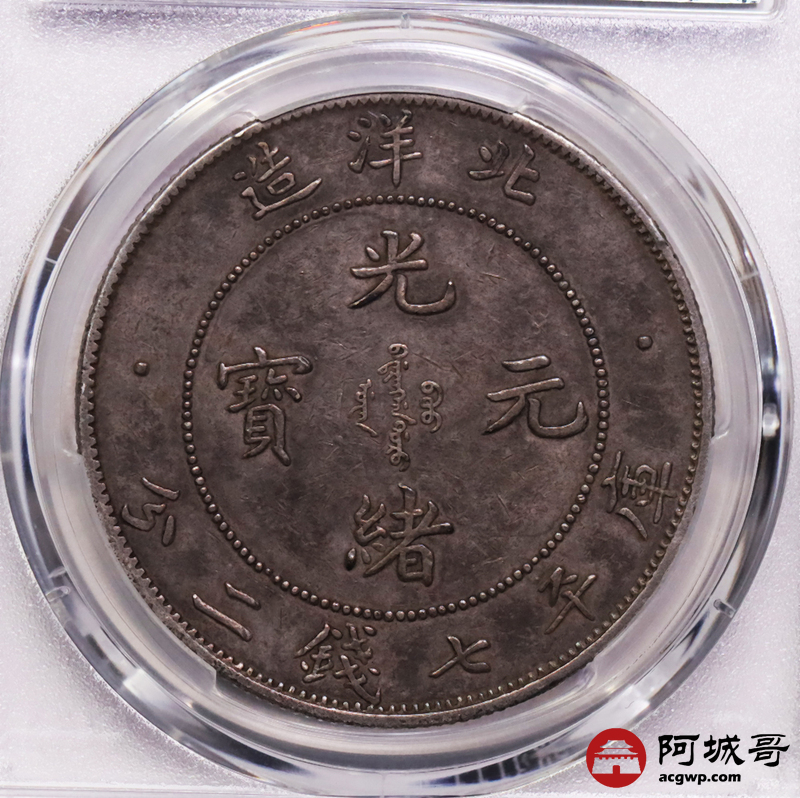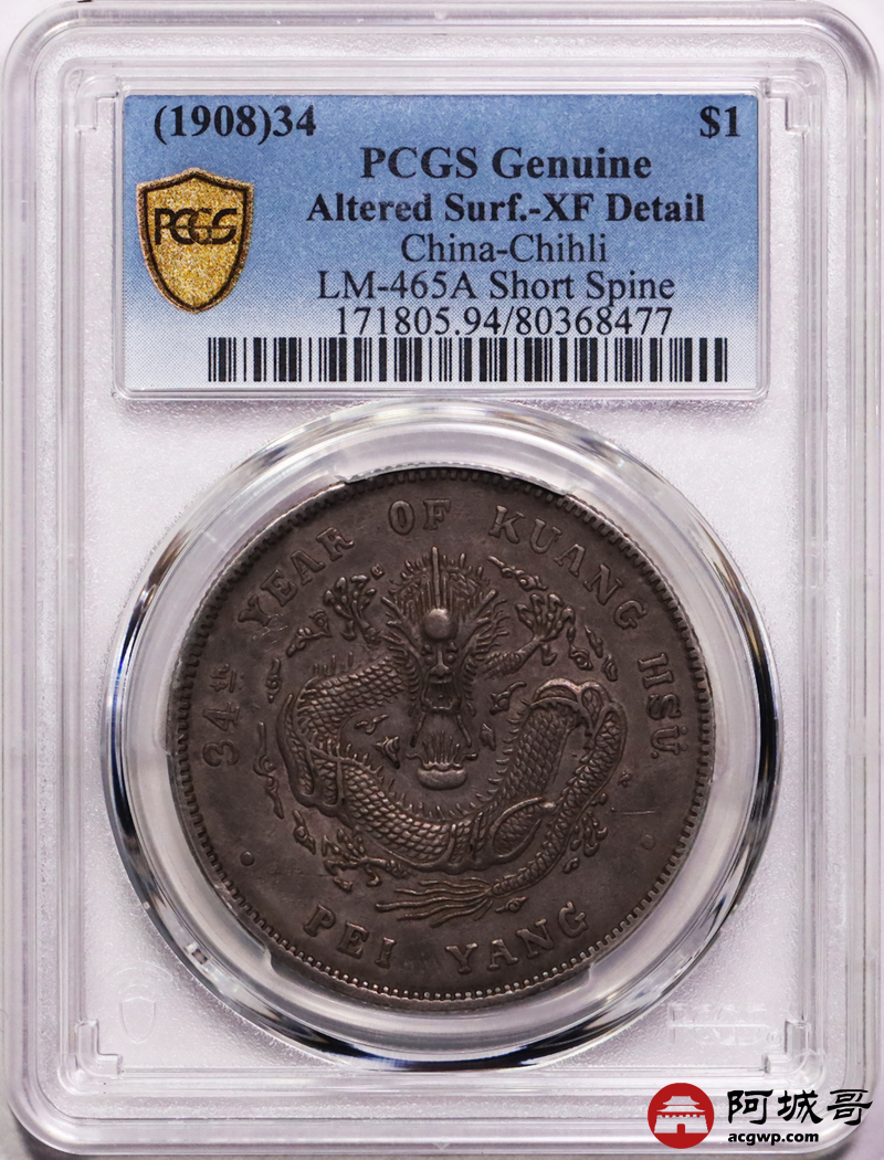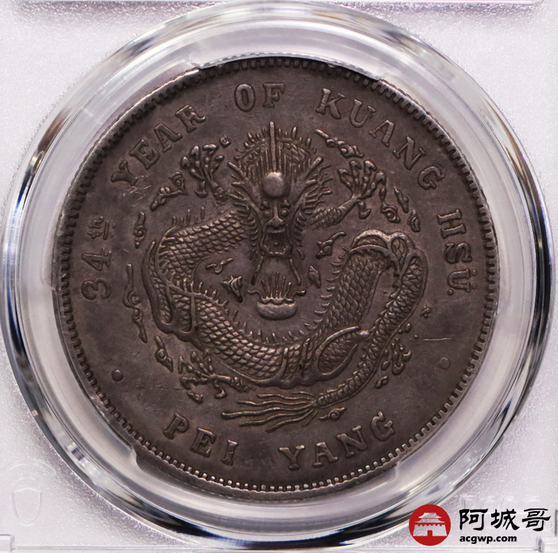 Lot:21 原味深打咖啡包浆 北洋34七钱二分短尾龙 PCGS XF