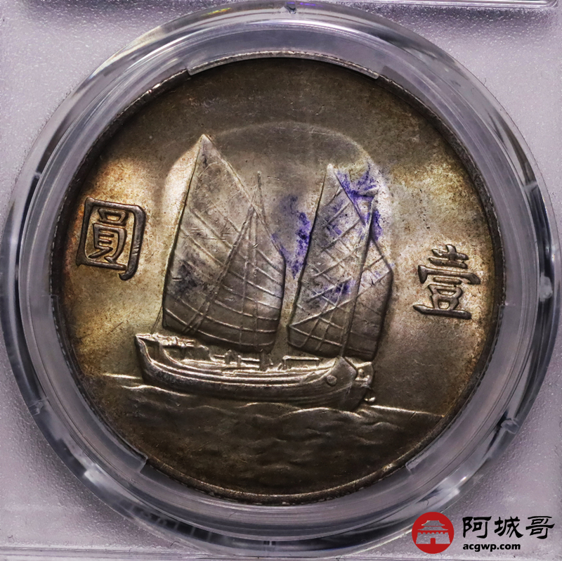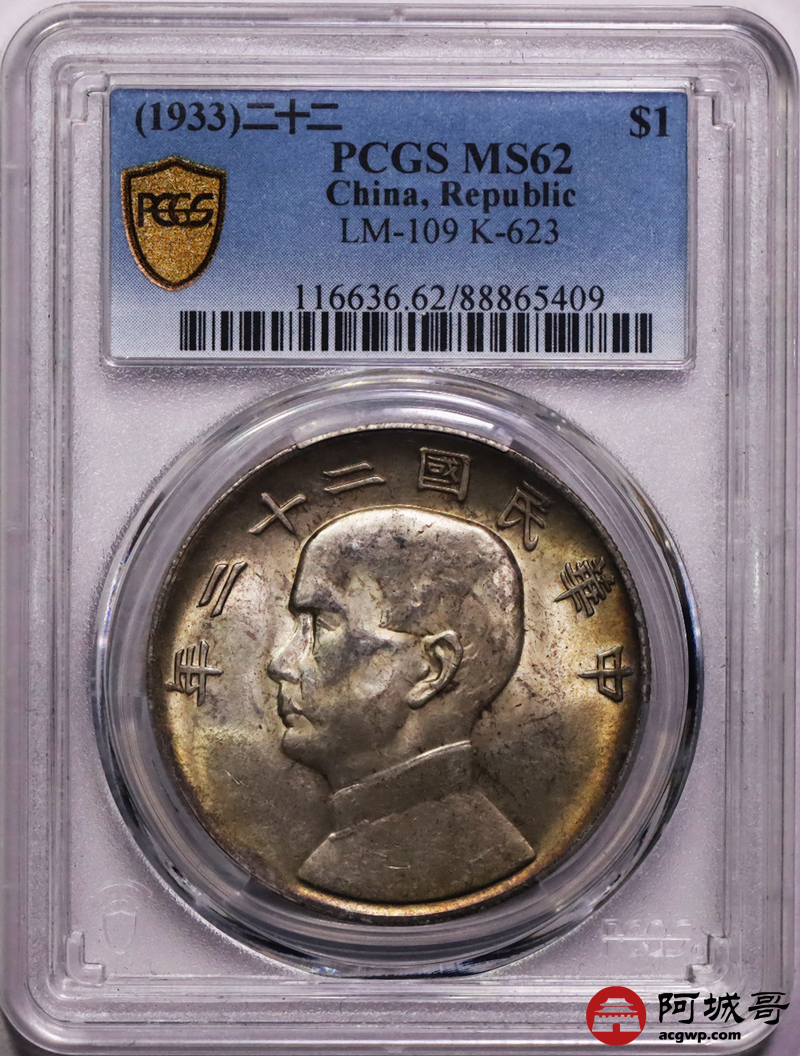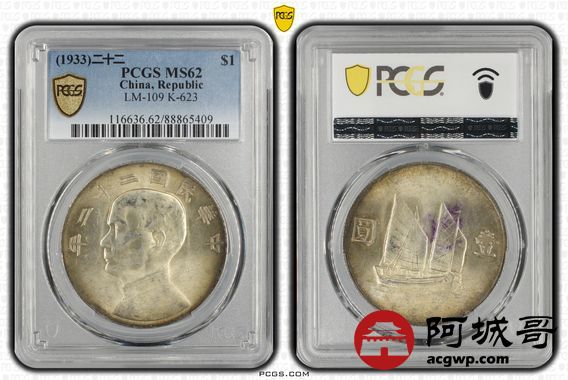 Lot:8 黄油淡彩原光 二十二年船洋 PCGS MS62