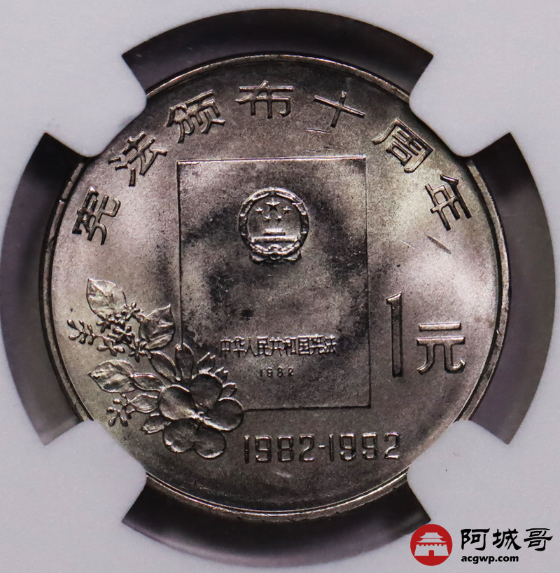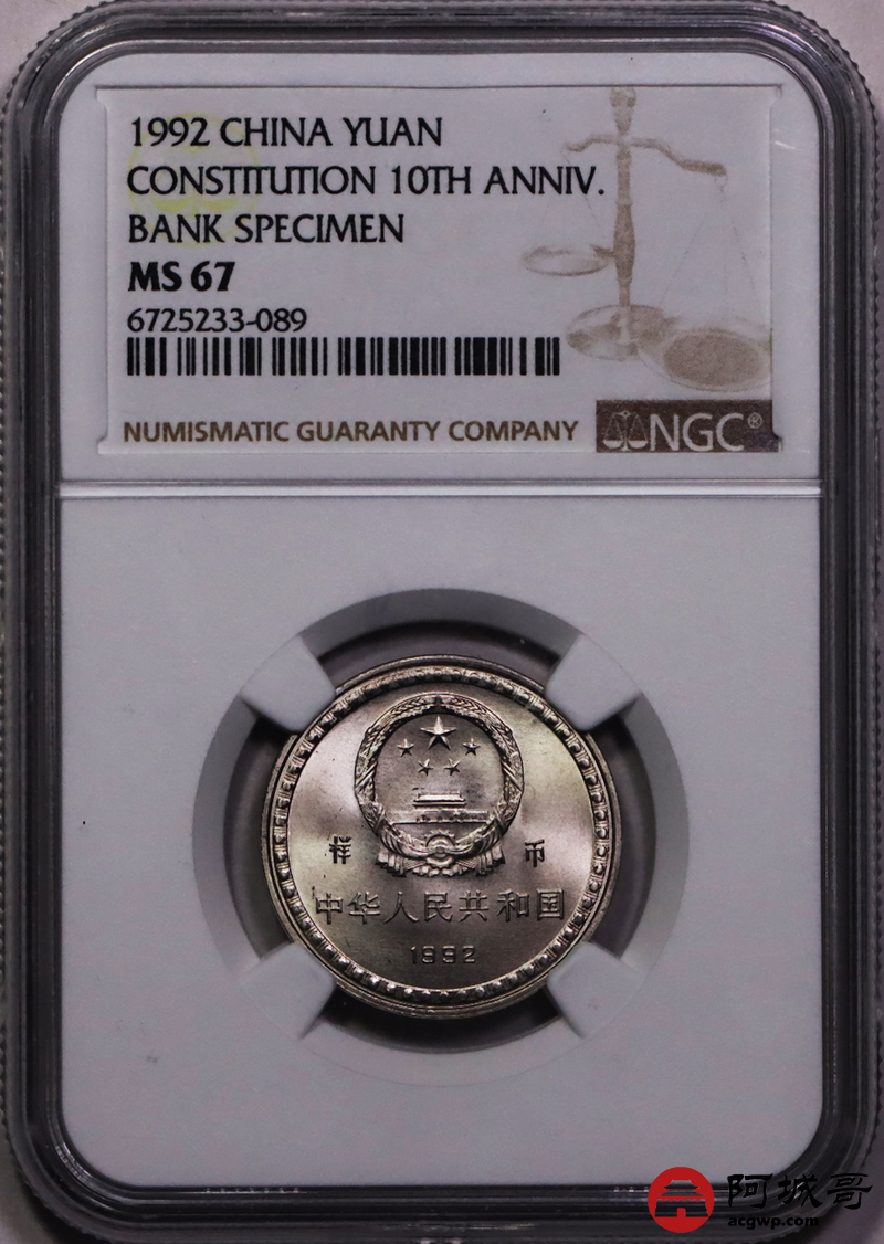 Lot:35 192年宪法颁布十周年样币 NGC MS67原盒