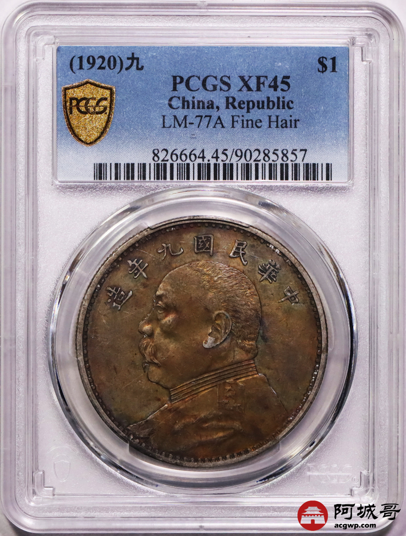 Lot:2 原味卷首五彩 九年精发壹圆 PCGS XF45