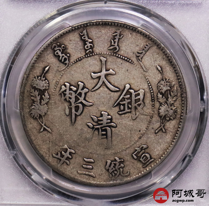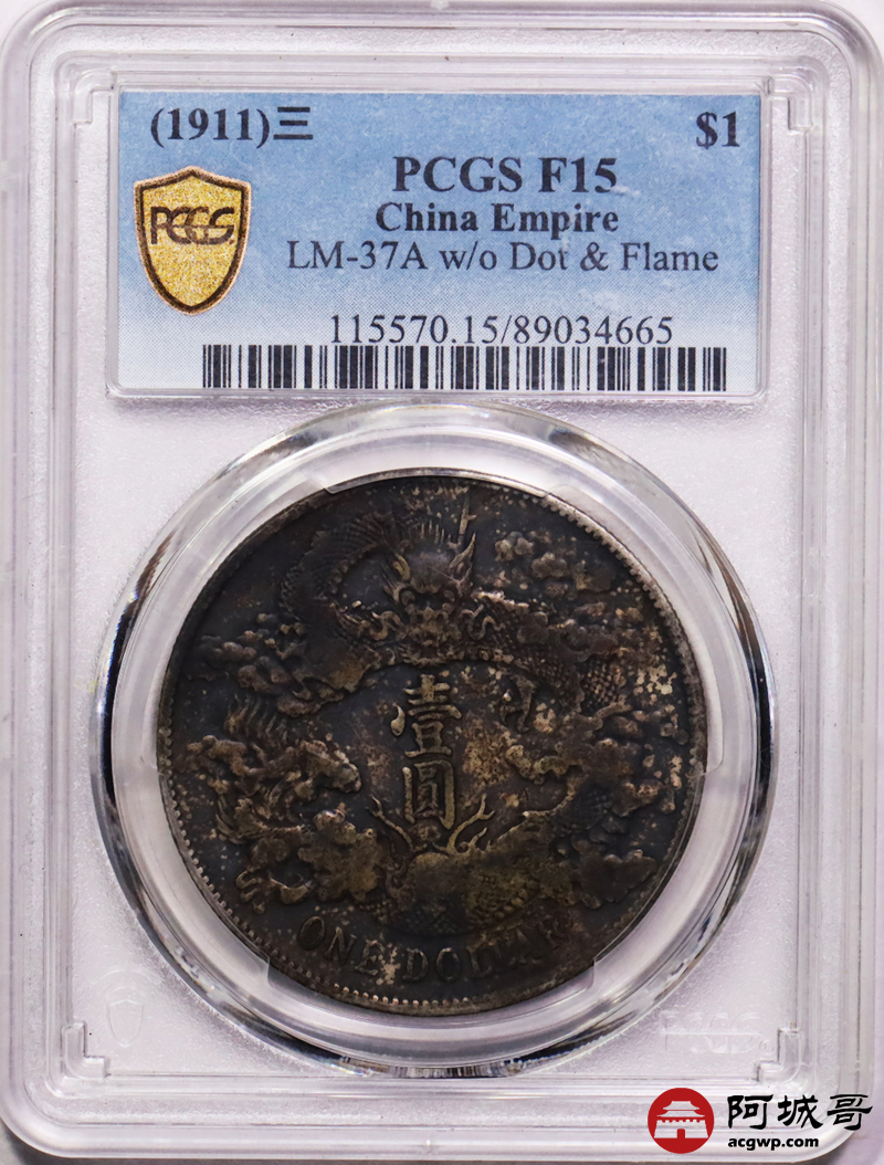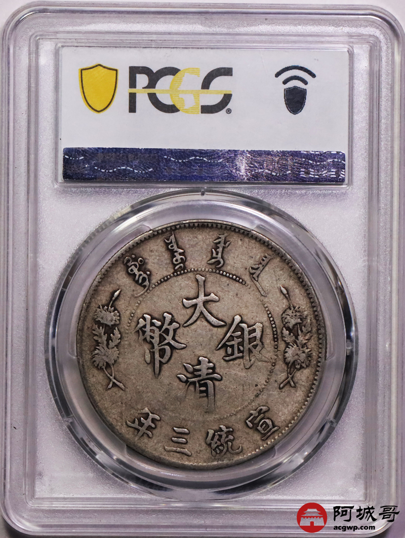 Lot:4 原味酱彩老包浆 大清宣三壹圆 PCGS F15