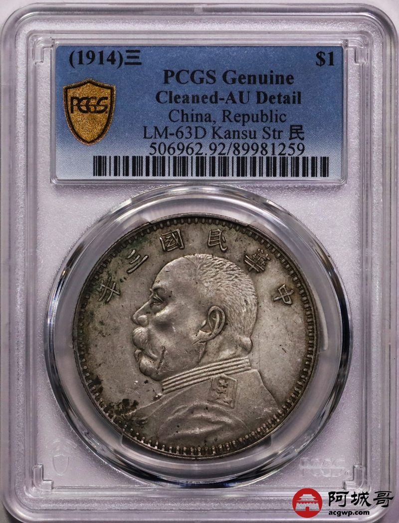 Lot:3 原味老包浆 三年大头甘肃精发大扣 PCGS AU