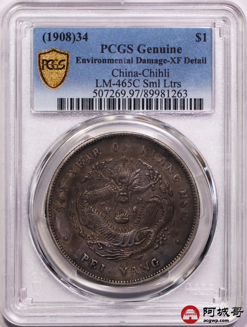 Lot:17 原味咖色老包浆 北洋34七钱二分 小字版 PCGS XF