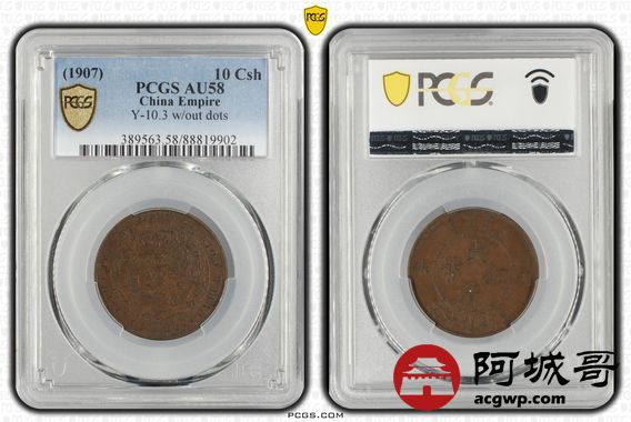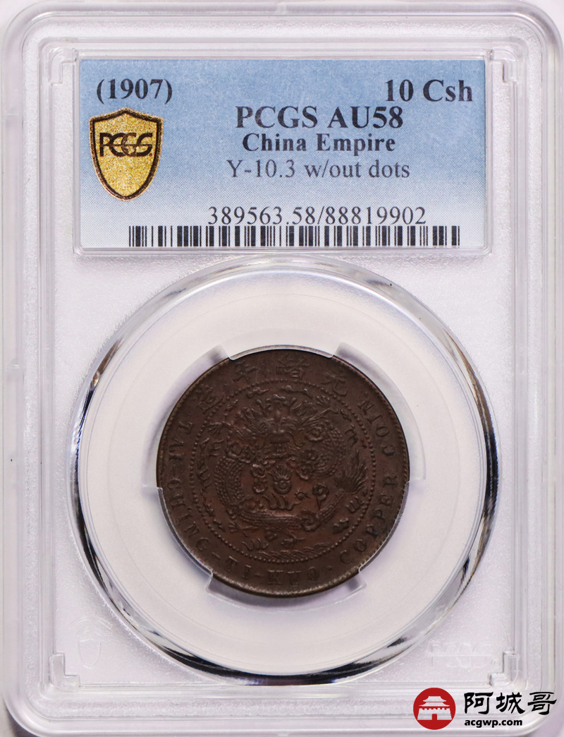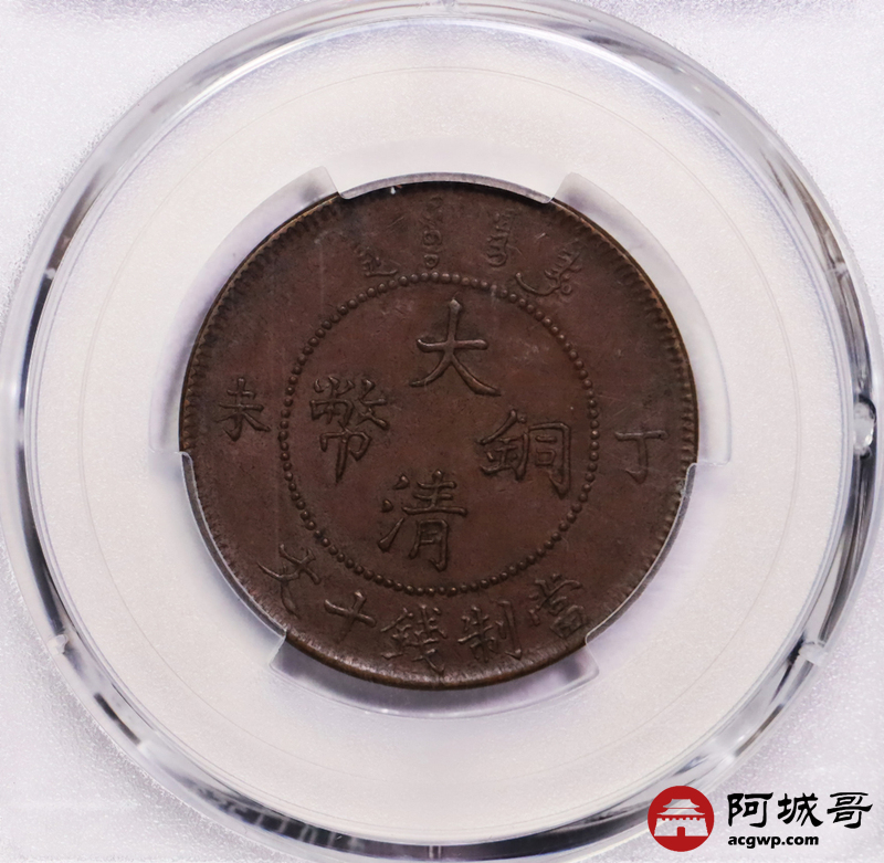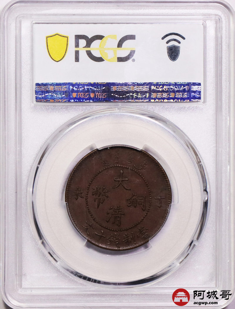 Lot:33 大清丁未十文铜币 PCGS AU58