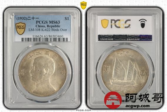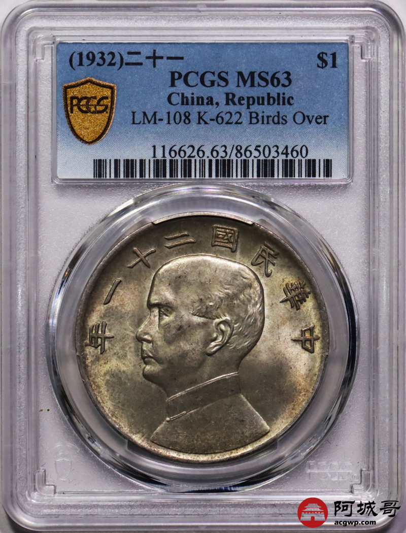Lot:11 原味 黄油彩 二十一年孙像三鸟壹圆 PCGS MS63