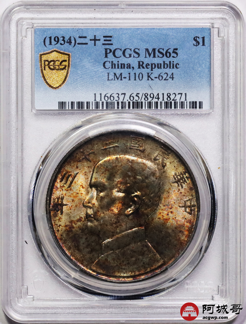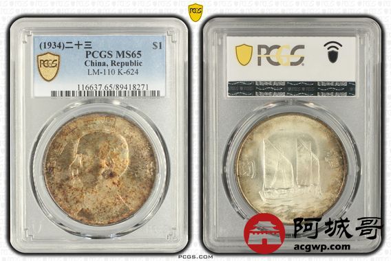 Lot:9 原光 沪上老五彩 二十三年船洋 PCGS MS65