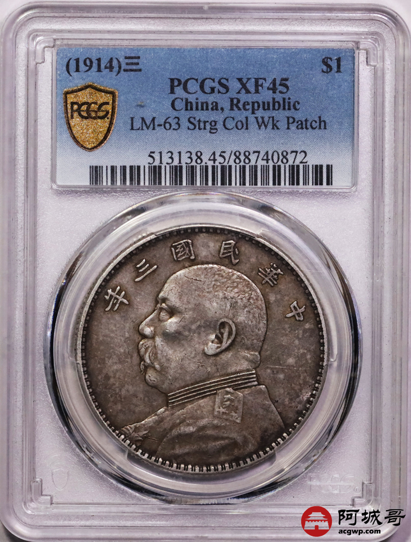 Lot:4 原味老包浆 三年大头挑华下鱼勾 PCGS XF45