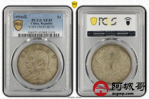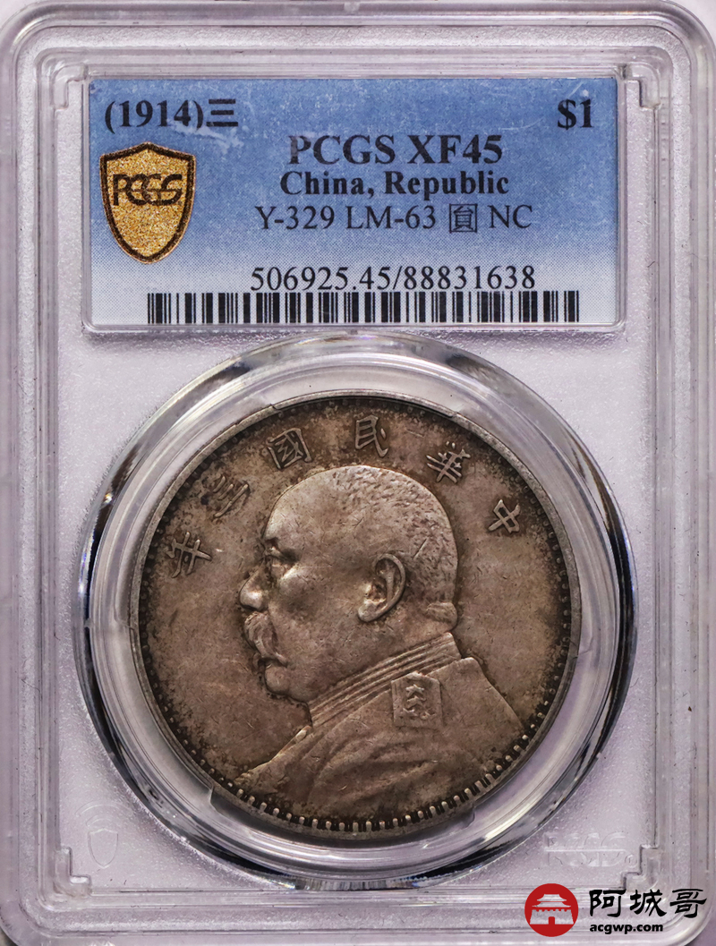 Lot:5 原味老包浆 三年大头壹圆 PCGS XF45